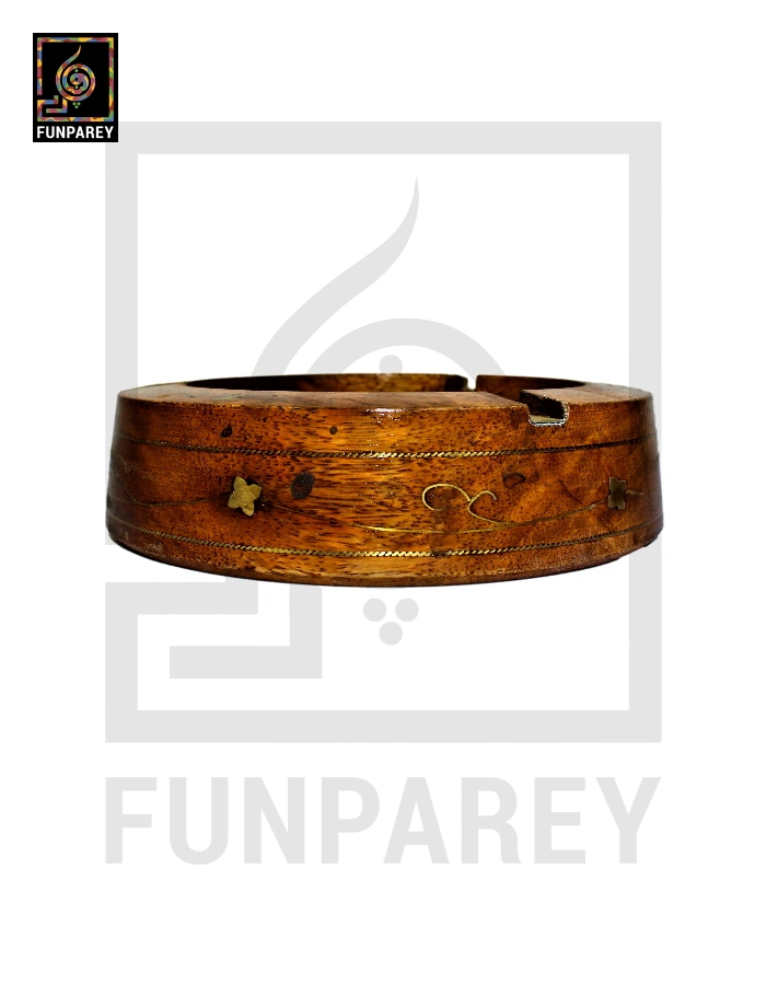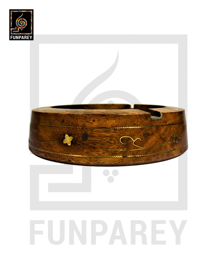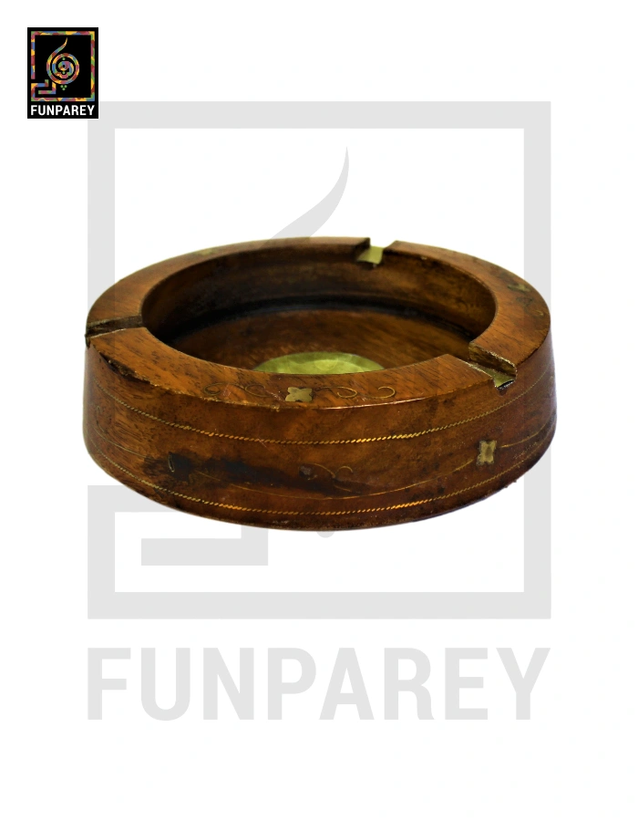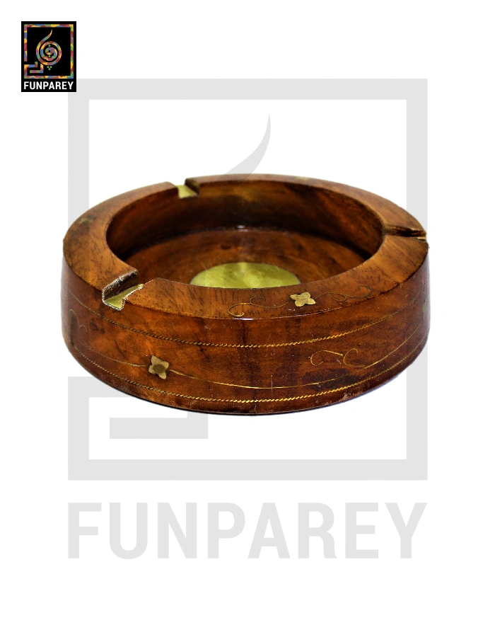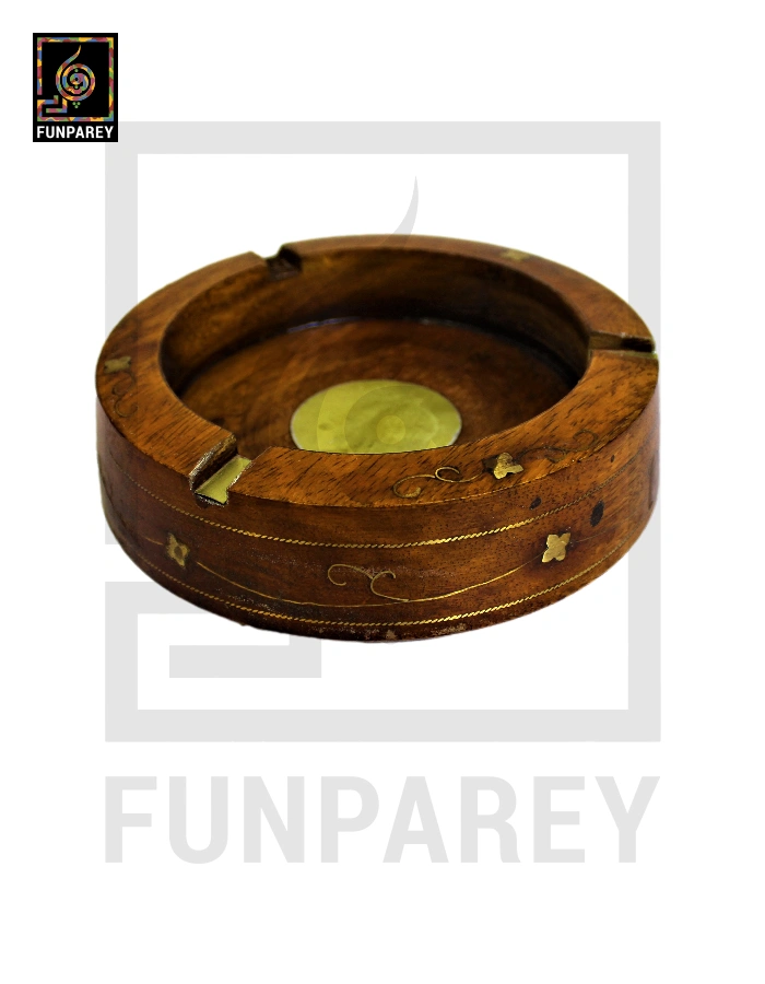 Handmade Wooden Circular Ashtray with Brass Work