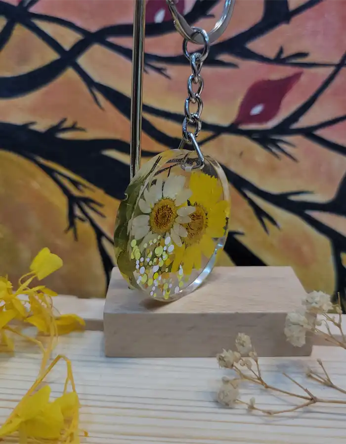 Heart Shape Resin Keychain – Floral Memory