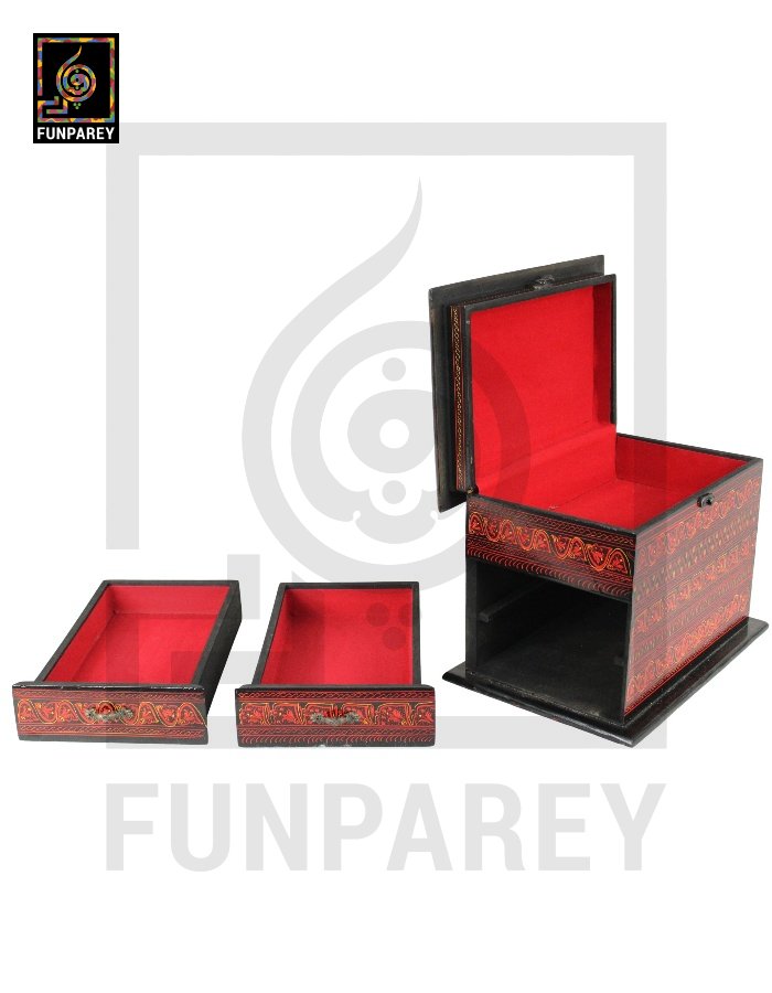 Lacquerware Wooden Trinket Box Distinct 8/12 with 2 Drawers